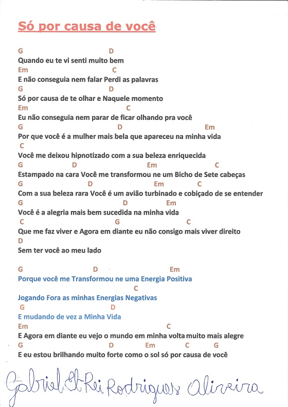 MINHA LETRA DE MÚSICA CHAMADA SÓ POR CAUSA DE VOCÊ...QUE É UMA